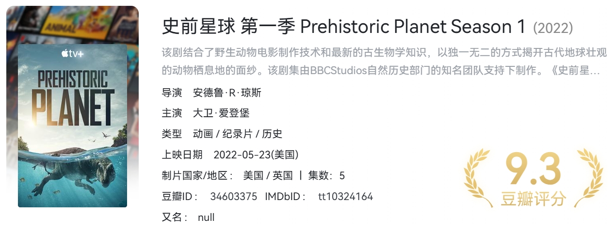 BBC纪录片《史前星球》S01-S02季合集 【4K HDR 高码率】 内封简繁英双语特效字幕【98.6G】 栏目:纪录片 作者:萝卜 时间:2025-12-23 17:11:56     **简介:** 该剧结合了野生动物电影制作技术和最新的古生物学知识,以独一无二的方式揭开古代地球壮观的动物栖息地的面纱。该剧集由BBCStudios自然历史部门的知名团队支持下制作。《史前星球》以白垩纪时代的环境为背景,描绘了海岸、沙漠、河流、冰雪世界和森林的场景,展示了鲜为人知且令人惊讶的恐龙生活。 > [!success] **资源链接** > https://pan.quark.cn/s/b81840c7b12d 版权声明:本站不存储任何实质资源,该帖为发布的网盘链接介绍帖。如您认为本站任何介绍帖侵犯了您的合法版权,请联系站长 ( 微信:huang_ssu ) 进行投诉,我们将在确认本文链接指向的资源存在侵权后,立即删除相关介绍帖子!