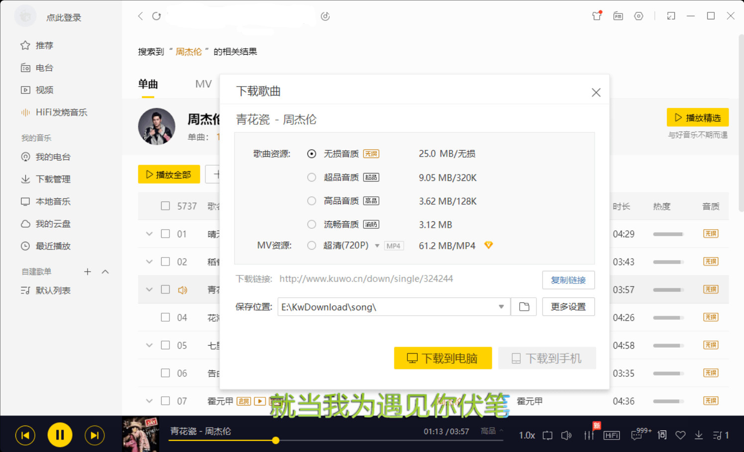 5、提供歌词和MV功能,用户可以随时查看歌曲的歌词和MV。