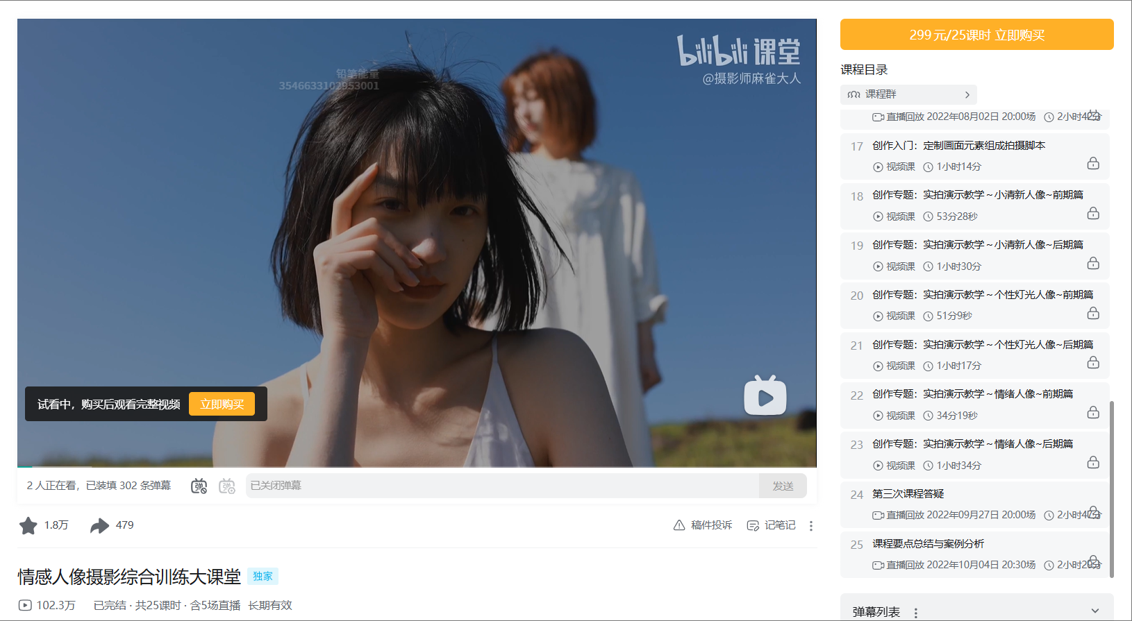 B站付费摄影课程,价值299,共25节课程,适合摄影爱好者,专门教如何拍出好看的小姐姐~ 撩妹必备技能