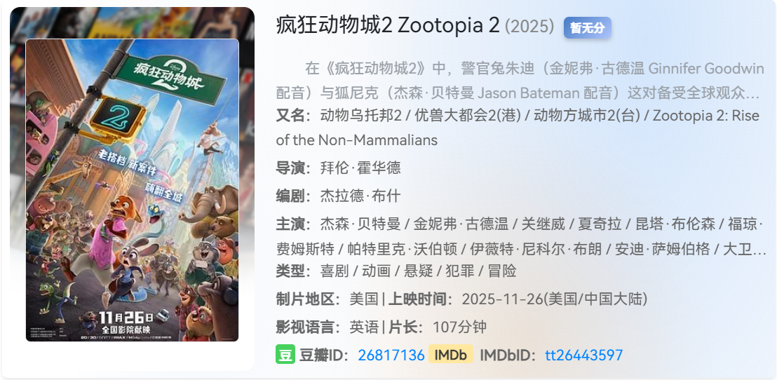 电影:疯狂动物城2 (2025) 高清版 [ 附第一部 ] [ 2025年11月26日上映 ]