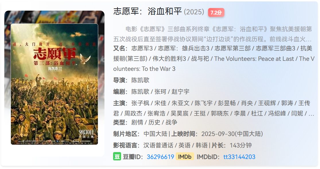 电影:志愿军 ( 浴血和平 )【 附前两部 】1080P 画质 + 中文字幕 栏目:电影区 作者:萝卜 时间:2026-01-01 23:30:14 简介: 一个字:震撼!两个字:还是震撼! 想看的速取,新资源失效很快!   **简介:** 一个字:震撼!两个字:还是震撼! **想看的速取,新资源失效很快!** > [!success] **资源链接** > https://pan.quark.cn/s/ab7558f70a53 版权声明:本站不存储任何实质资源,该帖为发布的网盘链接介绍帖。如您认为本站任何介绍帖侵犯了您的合法版权,请联系站长 ( 微信:huang_ssu ) 进行投诉,我们将在确认本文链接指向的资源存在侵权后,立即删除相关介绍帖子!