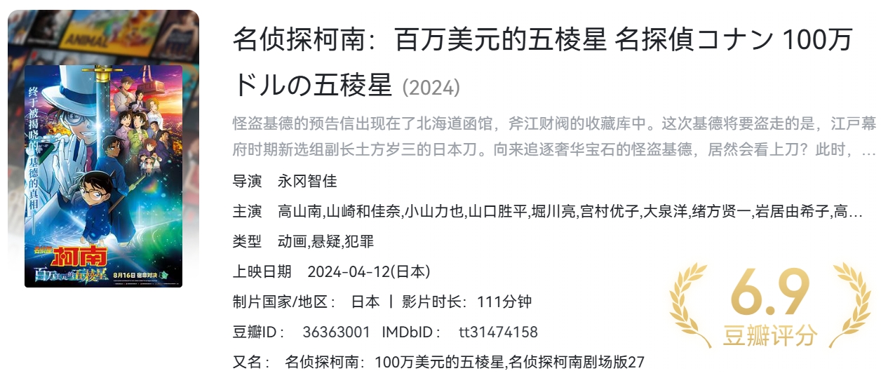 名侦探柯南:百万美元的五棱星(2024)【蓝光原盘REMUX】 内封简繁特效字幕【17.9G】